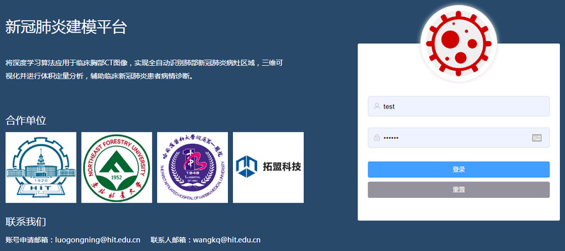 据了解,基于课题组在医学影像智能分析和三维重建技术方面的技术储备,王宽全教授带领青年教师骆功宁和硕士研究生何英特研发出“新冠肺炎在线建模平台”,并快速部署至哈尔滨新冠肺炎定点收治医院。课题组研究了高精度快速多期新冠肺炎患者几何模型构建和定量分析算法,研究成果支持多期医学影像数据协同管理以及多人多机协同操作。