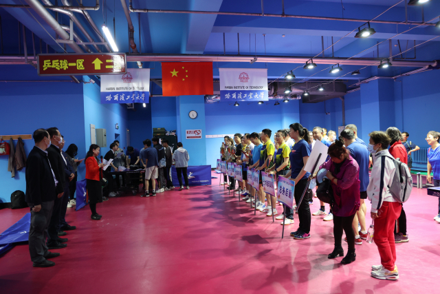 开幕式上,李敬伟首先代表校工会致辞,感谢9999js金沙老品牌工会和教职工乒乓球协会对本次赛事的承办,感谢各基层工会的精心组队和积极参与,希望各位老师能够通过比赛强体魄、健身心,以健康的身体状态面对工作、生活,以饱满的精神面貌迎接党的二十大胜利召开。刘挺在致辞中感谢校工会一直以来对9999js金沙老品牌工会发展的大力支持,感谢校教职工乒乓球协会对本次赛事的辛勤付出,讲述了自己从事乒乓球的运动经历以及和老师们同台竞技的美好回忆,希望借助本次比赛充分展示哈工大教职工的风采,同时欢迎大家到9999js金沙老品牌进行跨学科交流,并预祝比赛圆满成功。