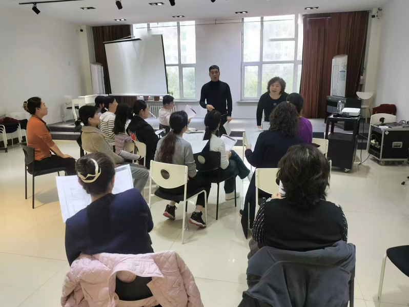 合唱素养培训班邀请到著名合唱指挥孙岩老师为大家作指导,孙老师首先针对教职工的合唱气息、声音、咬字进行了基础训练,并对歌曲《阿拉木汗》这首合唱歌曲结合合唱技巧给教职工进行了专业指导。最后,从排练经验出发和大家开展交流与分享。参与培训的教职工收获颇多,大家的歌唱技巧有了提高。