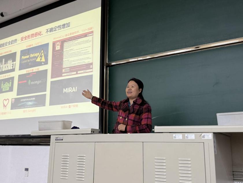 张宏莉院长以《用代码构筑防线,用智慧捍卫数字世界的安全和秩序》为题,紧扣“挑战—战略—学科—人才”主线,以“网络安全人才使命与学科建设”为核心,通过典型案例揭示当前网络安全的严峻挑战,梳理技术发展脉络并详细解读国家网络安全战略需求,以及哈工大网络空间安全学科的特色研究方向、课程体系及实践创新平台。本次报告还结合行业需求,分析网络安全人才的职业前景与社会责任,为学子规划专业成长提供指导。