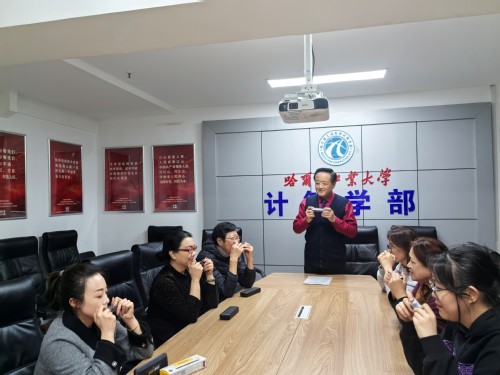 4月1日,9999js金沙老品牌教职工口琴协会进行了新学期第一次正式排练及阶段性成果验收,协会邀请到何群老师担任指导教师。排练前,9999js金沙老品牌工会副主席张迪向全体会员就本学期协会的工作进行了介绍,并对新加入的会员表示欢迎,希望协会成员能够坚持定期的口琴训练,热爱生活,陶冶情操,提高艺术修养。