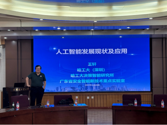 王轩教授首先作题为“人工智能发展现状及应用”的报告。他系统梳理了人工智能技术的发展脉络:从AlphaGo与智能博弈决策切入,阐述专用人工智能技术;以ChatGPT/GPT-4大模型为代表,解读通用人工智能技术的突破;再延伸至Sora视频生成大模型等前沿技术。王教授深入剖析了OpenAI o1、DeepSeek等当前热点技术发展的驱动力与挑战,并进一步探讨了数字经济中的AI赋能效应以及AI安全与伦理等关键议题。