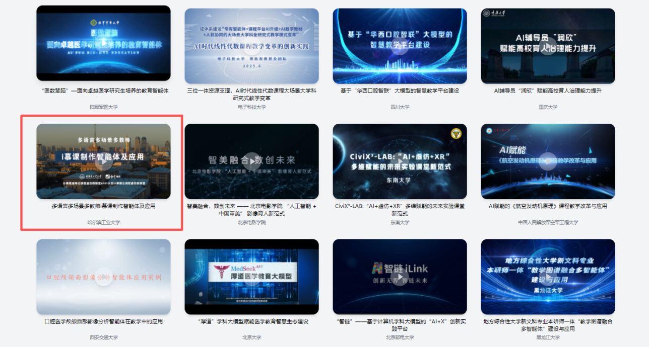 《多语言多场景多教师i慕课制作智能体及应用》案例提出多语言多场景多教师i慕课新模式,利用课程知识图谱、视频与数字教材训练AI模型,利用AI多模态合成实现数字分身讲课,利用AI多语言翻译实现专业课翻译并校正,利用AI虚拟场景生成实现学生沉浸式学习,利用AI问答生成实现实时答疑解惑,进而研发建设i慕课制作智能体,服务教师快速制作与更新教学资源,已应用于数十所高校的超百门课程改革。